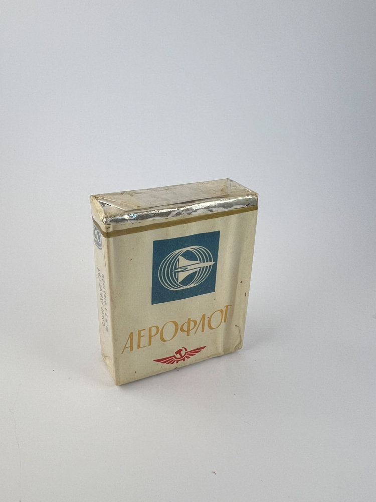 Historical data and popularity: Šis pakelis susijęs su vienu didžiausių pasaulio oro vežėjų XX a. – „Aeroflot“. Kolekcininkų tarpe labai vertinamas kaip sovietinės propagandinės pakuotės pavyzdys.