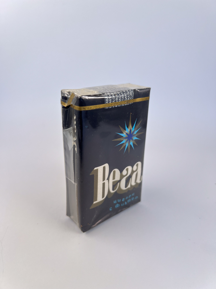 Klasikinis tamsiai mėlynas „Вега“ (Vega) cigarečių pakelis – vienas ryškesnių Rytų Europos tabako pramonės produktų iš vėlyvojo sovietinio laikotarpio. Pakuotės dizainas minimalistinis, bet elegantiškas: giliai mėlynas fonas kontrastuoja su didelėmis, sidabrinėmis raidėmis „"Vega"“, o virš jų – stilingas star motif, simbolizuojantis šviesą ir pažangą (tai buvo populiari SSRS simbolika, atspindinti progreso idėją).