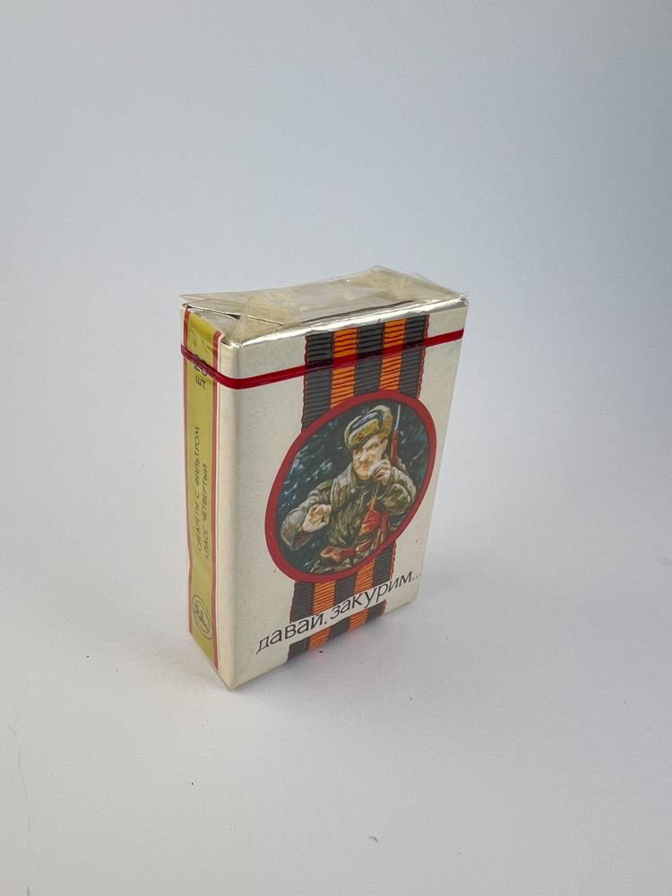 Historical data and popularity: „"Давай, закурим..." is a phrase from a famous Soviet wartime song, which, together with the visual elements, is strongly associated with the theme of World War II. Such packs were often produced in limited quantities for festive occasions. As a result, they attract more attention than regular serial releases.