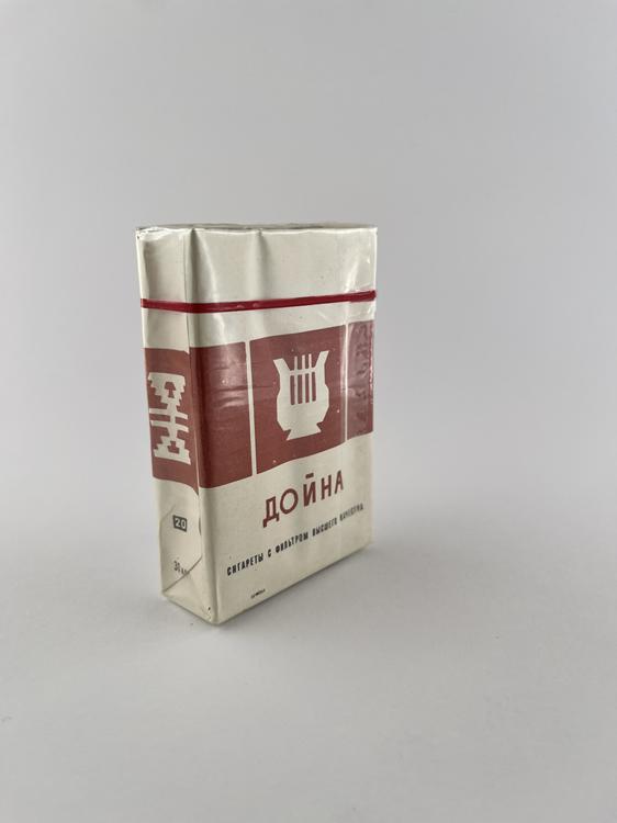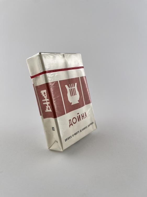 Aprašymas: „Дойна“ cigarečių pakelis pasižymi tipišku ankstesnio sovietinio laikotarpio minimalistiniu dizainu. Dominuoja šviesi kreminė spalva su raudonais grafiniais elementais ir stilizuotais simboliais, tarp kurių matomas muzikos instrumentą primenantis motyvas, siejamas su moldaviška kultūra. Pavadinimas „Дойна“ (tai tradicinės moldaviškos muzikos terminas) pabrėžia regioninę kilmę ir kultūrinį identitetą. Ant pakelio nurodyta, kad cigaretės yra su filtru ir aukštesnės klasės („сигареты с фильтром высшего класса“), kas tuo laikotarpiu buvo svarbus kokybės rodiklis. Pakelis minkštas, kas būdinga senesniems SSRS gaminiams.