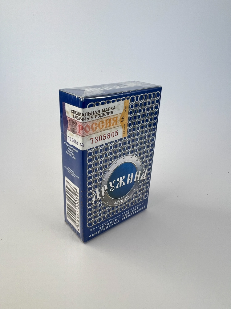 • Historical data and popularity: „"Druzhina" cigarettes were produced for the Russian domestic market, distinguished by their patriotic design, but were not mass-exported. They are currently becoming increasingly rare.