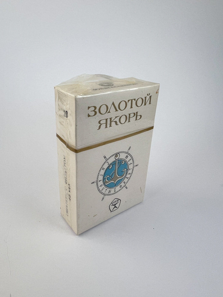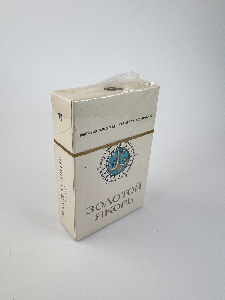 Šis „Zolotoy Yakor“ (liet. „Auksinis inkaras“) cigarečių leidimas pasižymi šviesiu, elegantišku dizainu – balta pakuotės spalva su auksinėmis raidėmis, horizontalia linija ir jūrine simbolika centre. Emblema vaizduoja mėlyną inkarą apsuptą laivo šturvalo motyvu bei užrašu „ПАРТЁГК К НОВОЙ ЖИЗНИ“ („Kelias į naują gyvenimą“) ir pažymėta CCCP ženklu. Šis leidimas – tai prestižinis SSRS tabako produktas, perteikiantis jūrinę dvasią ir valstybinės gamybos išskirtinumą.