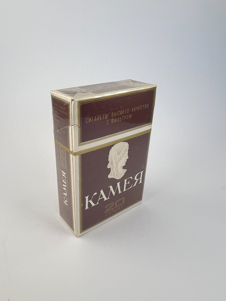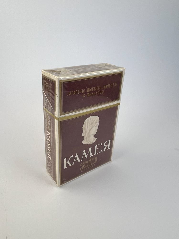 Historical data and popularity: „"Камея" was one of the prestigious Soviet cigarette lines, aimed at a more discerning consumer. It did not achieve mass distribution like the cheaper Soviet brands, so these packs are less common on the collector's market today.