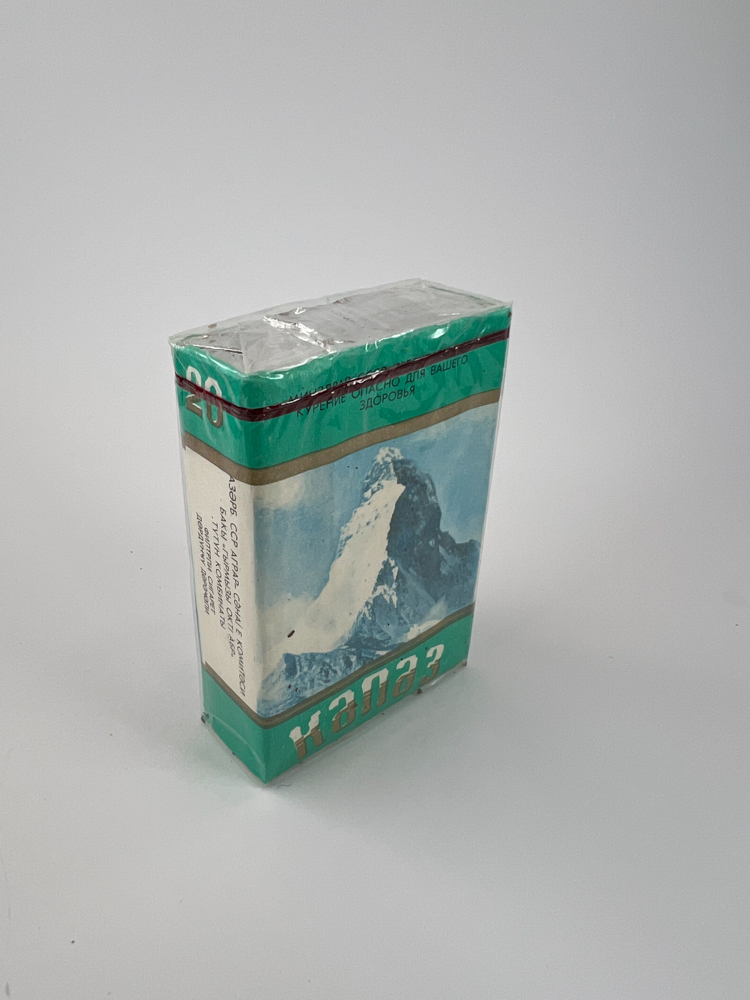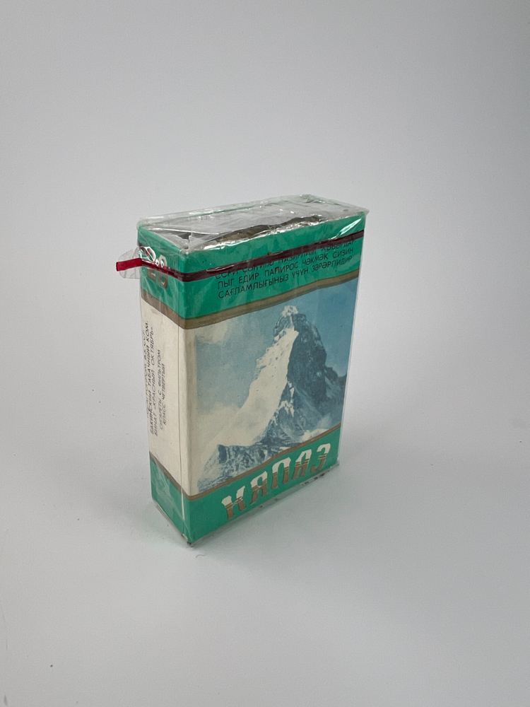 „The Kyazz pack reflects the landscape and natural heritage of Kyrgyzstan, making this cigarette release not only a smoking product but also a cultural representation. The release was intended for the local market, but due to its bilingual nature, it is assumed that it was also aimed at domestic tourist consumption in the USSR.