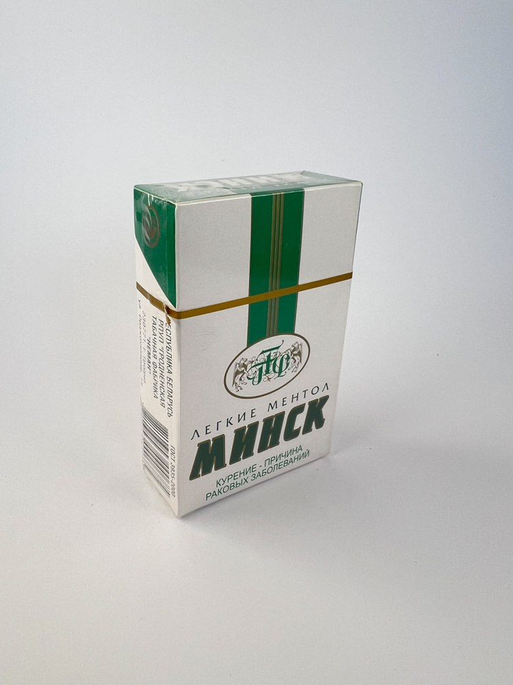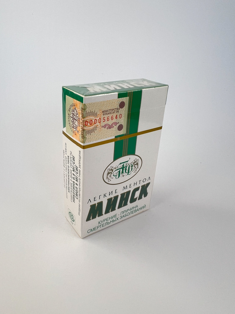 Historical data and popularity: „The Minsk brand was very popular in Belarus, while the menthol versions generally had a smaller but stable following. Due to the specific flavor category and limited demand, these packs may be considered somewhat rarer among collectors.