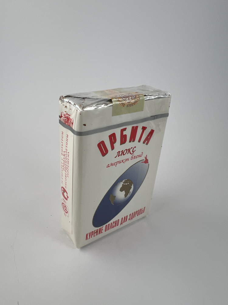 Description: „Орбита Люкс“ – tai rusų gamybos cigarečių pakelis, kurio dizainas orientuotas į „kosminį“ ir pasaulinį įvaizdį. Pakelio centre pavaizduota Žemė su orbita, o raudonas užrašas „Orbita“ išsiskiria ryškumu. Tekstas „American Blend“ rodo naudojamą tabako rūšį. Viršutinėje dalyje išlikęs senosios kartos akcizinis ženklas. Pakelis pasižymi minimalistiniu sovietmečio pabaigos ar ankstyvos posovietinės eros dizainu.