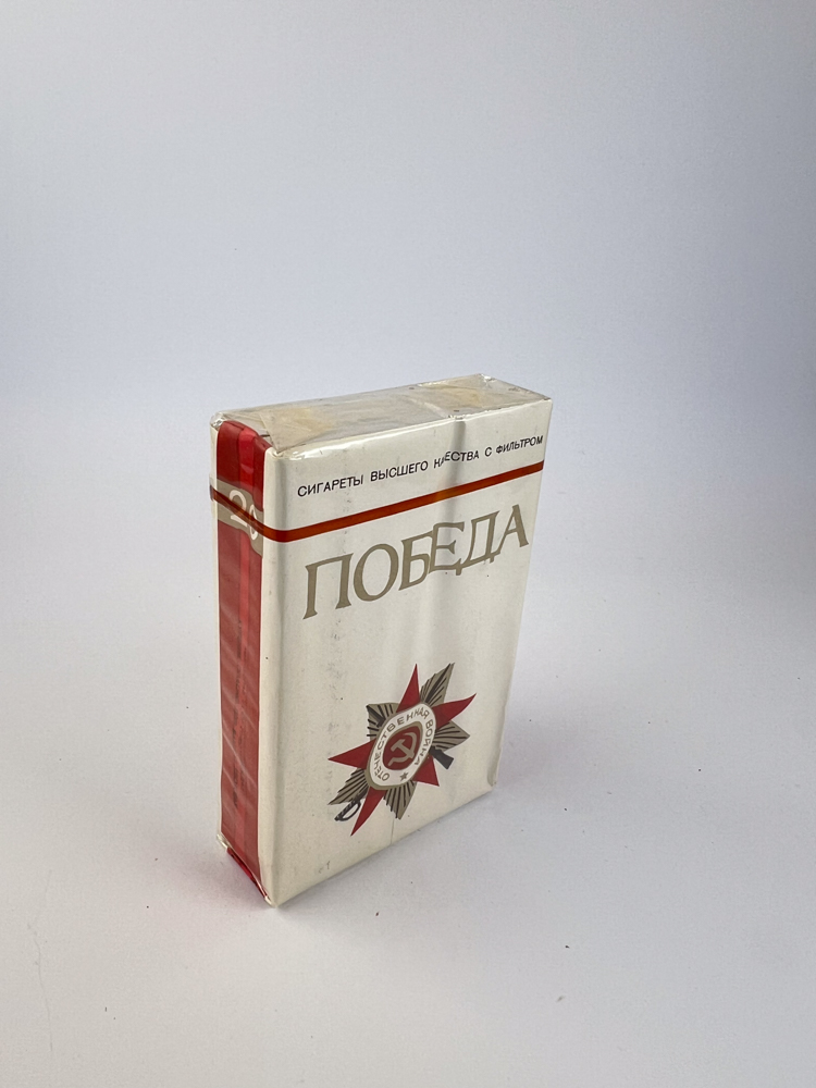 Historical data and popularity: „Победа“ buvo platinama kaip aukštesnės kokybės produktas, skirtas oficialioms progoms arba dovanoms. Šis pakelis išsiskiria savo aiškiu patriotiniu kontekstu, todėl kolekcionierių tarpe dažnai laikomas vienu iš reprezentacinių SSRS laikotarpio tabako dizaino pavyzdžių.