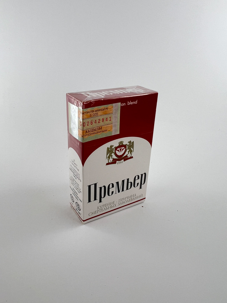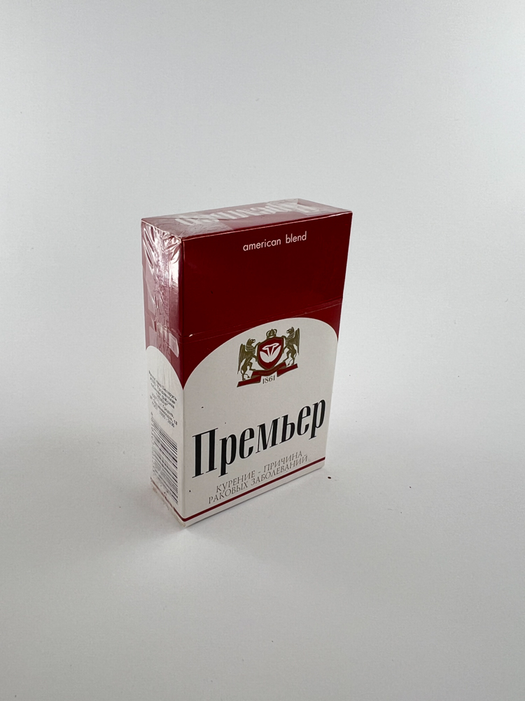 „"Premier" is a traditional Belarusian manufacturer. The packaging is minimalist, with an elegant design at the top with an emblem and the inscription "american blend". Wrapped in transparent film, all warnings and the stamp are intact and comply with current regulations.