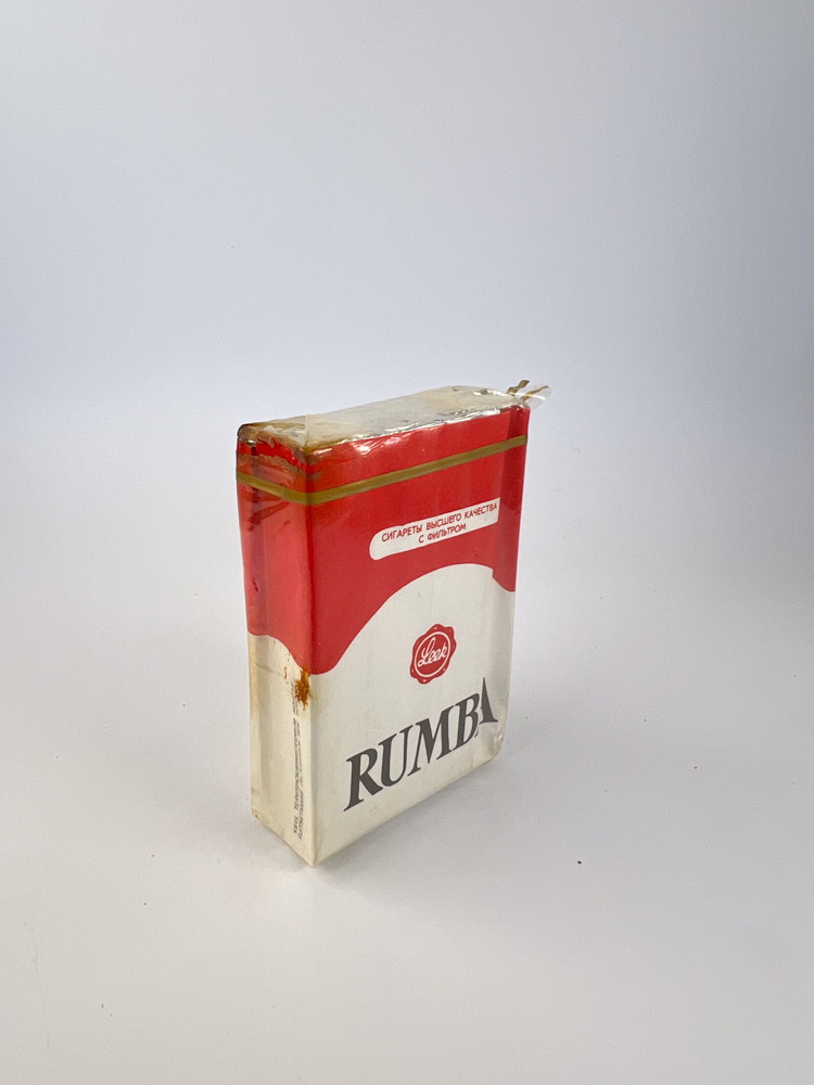 „"Румба" - a high-end Soviet cigarette, produced by the tobacco factory "Leek" in the Estonian SSR (marked with a logo on the pack). The design is typical of the Baltic production style: clean, with a minimalist combination of red and cream colors and subtle gold tones. The name "Rumba" is associated with dance - such names were popular in order to give the cigarettes an impression of "modernity" or "foreignness". The pack states that these are "highest quality cigarettes with a filter".