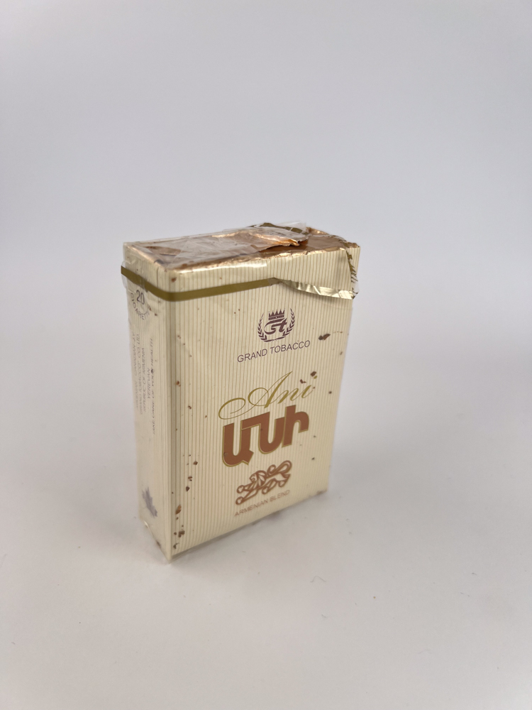 In the center – the brand name Ani (Ani), written in both Armenian and Latin script, with a decorative inscription at the bottom „Armenian Blend“, indicating that the cigarettes are made from a local tobacco blend.