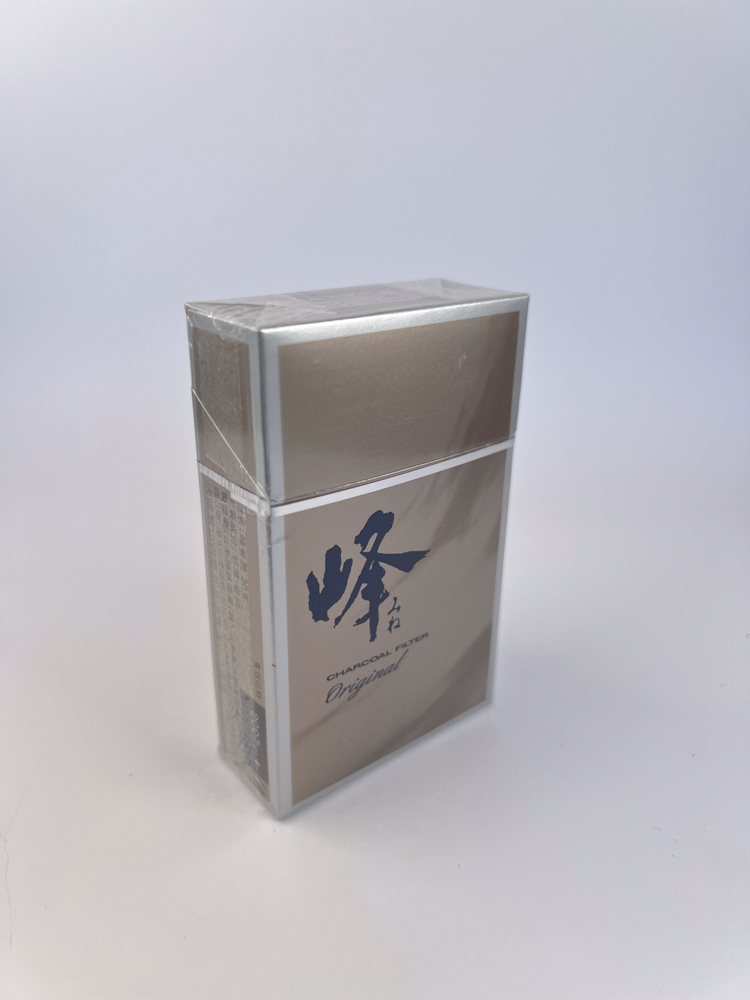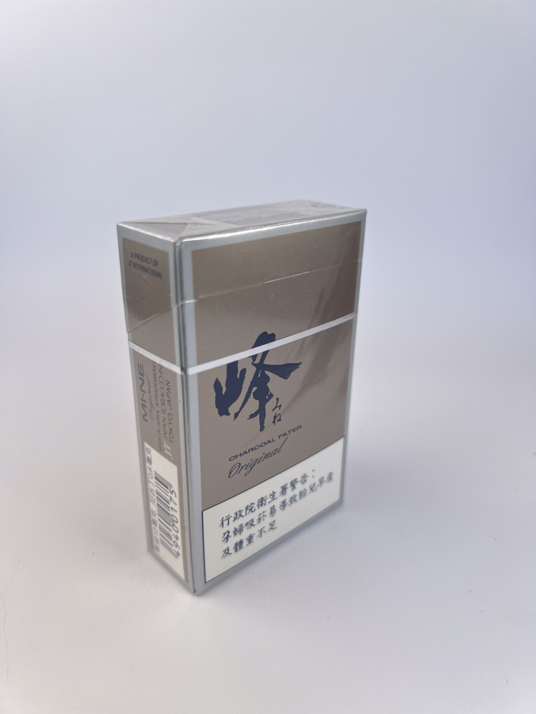 Japoniškas cigarečių pakelis Mine (峰) yra subtilaus minimalistinio dizaino pavyzdys, atspindintis Japonijos vizualinę estetiką. Pakuotės spalvinė schema – sidabrinė su subtiliu perlamutriniu atspalviu, o centre – tamsiai mėlynu šepetiniu šriftu užrašytas kanji ženklas 峰 (Mine), reiškiantis „viršūnę“ arba „kalno keterą“.