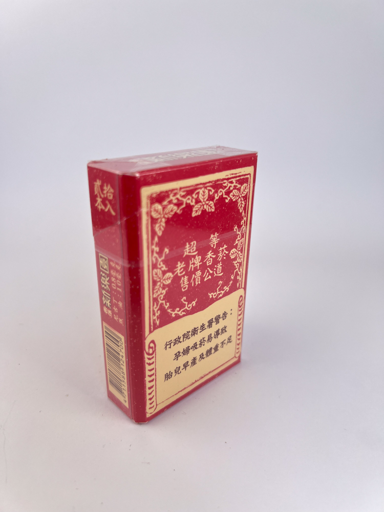 This red version classical 新樂園香菸 (Xin Le Yuan) package made of Taiwan Tobacco and Alcohol Monopoly Bureau (台灣省菸酒公賣局). This design is considered one of the most recognizable examples of early Taiwanese cigarettes, with a distinctly vintage aesthetic.
