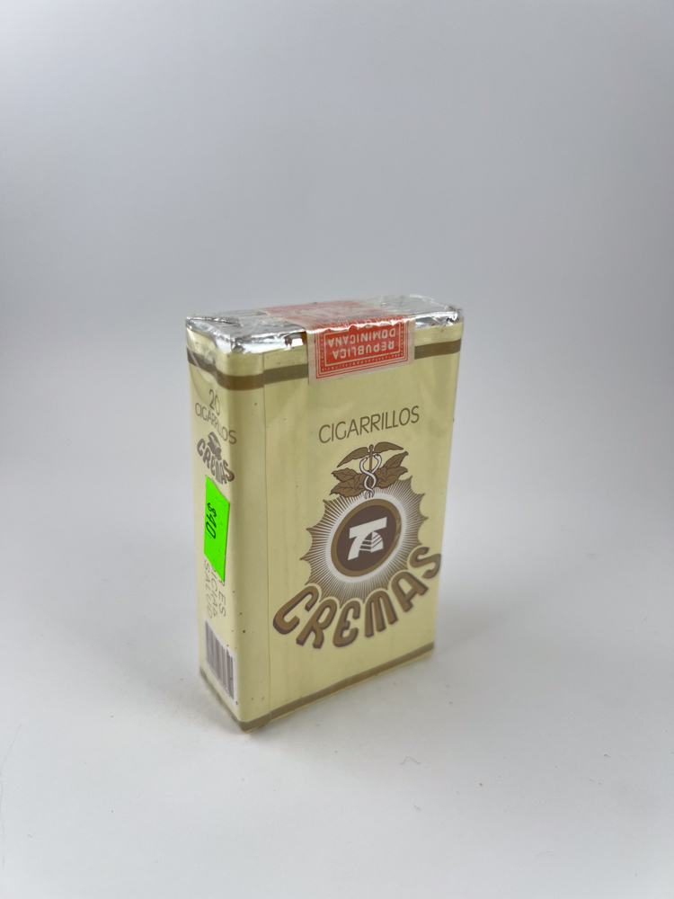 „"7 Cremás" - one of the old Local production in the Dominican Republic cigarette brands, with a distinctive Caribbean style. Name Creams (Spanish for "creamy") refers to a milder, sweeter tobacco flavor, often mixed with local aromatic additives.