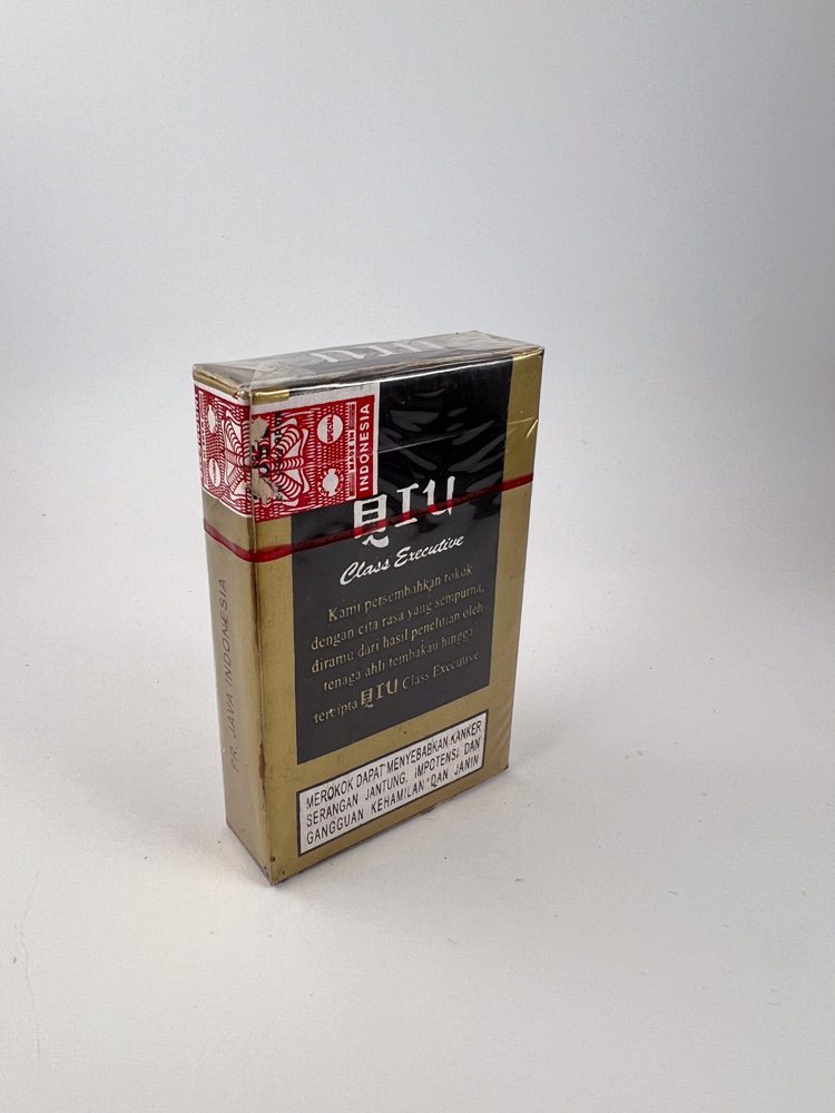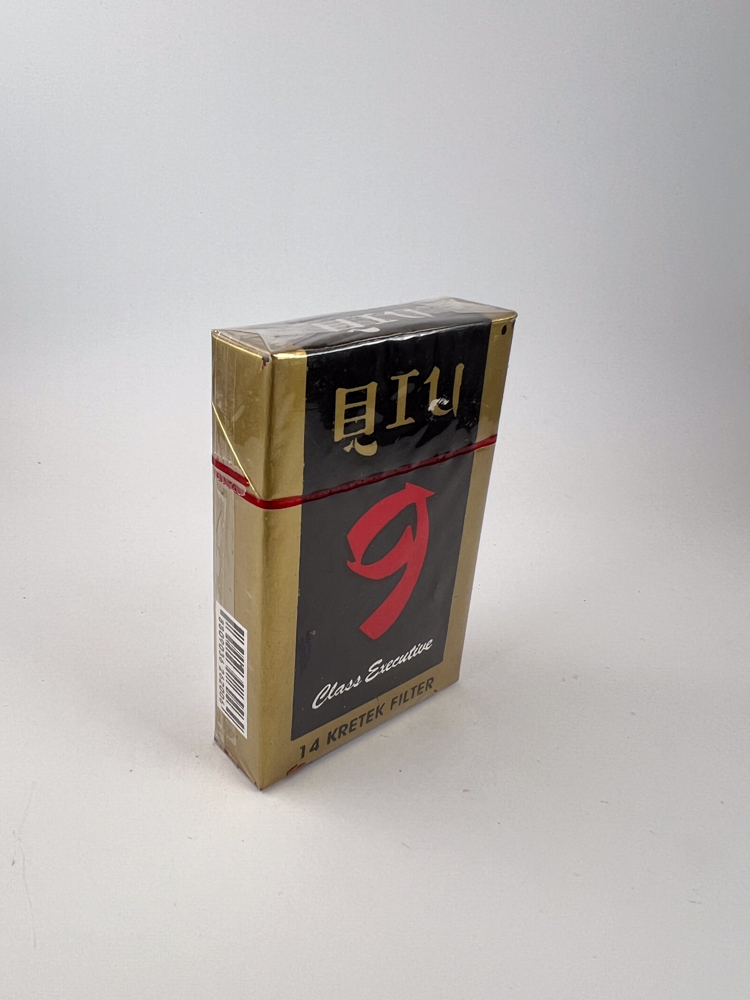 „9 Class Executive (or Sembilan Class Executive) is available luxuriously stylized kretek cigarette a pack designed as a higher-end line for traditional Javanese tobacco products.
