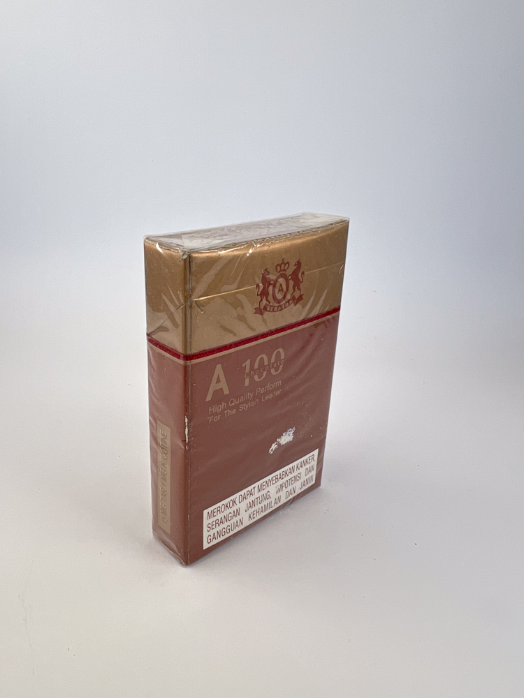 Collectible value: Average. The A100 series is not particularly old, but its design and branding reflect the transition of the Indonesian kretek market into the modern era. It is interesting to collectors as an example of how local manufacturers sought to create a "Western" image of luxury.