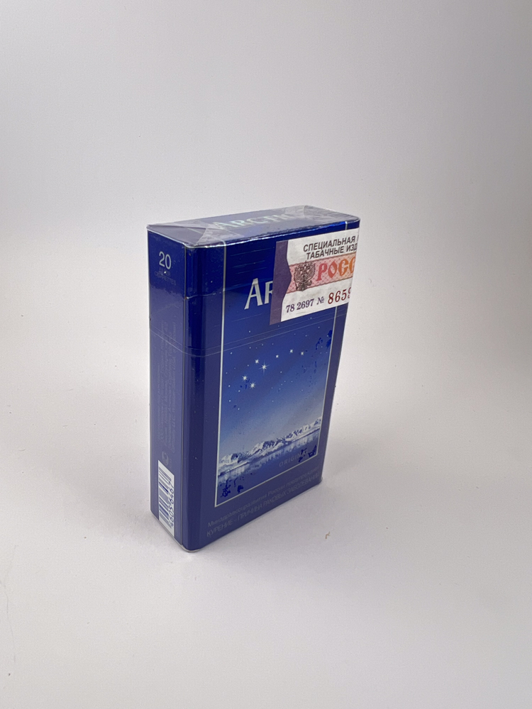 „Arctic is a cigarette package with a fresh and minimalist design, symbolizing cleanliness, cold, and Nordic purity.