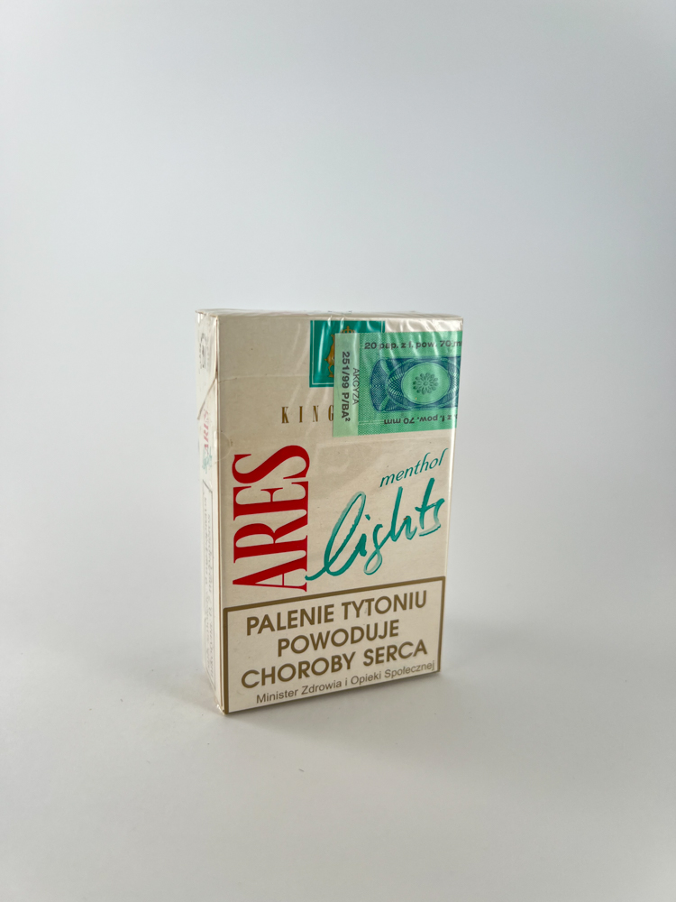 Historical data and popularity: A rare item on the modern market, the packaging has survived in good condition, and Ares cigarettes are almost impossible to find today. It may have been a smaller brand, produced and distributed only in Poland or a few surrounding regions.