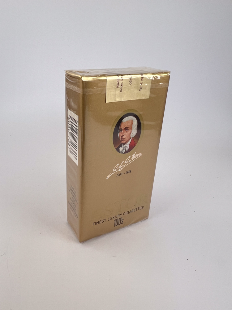 „Astor 100's is a high-end cigarette line manufactured in Germany by the Reemtsma tobacco factory, which belongs to one of the oldest European tobacco manufacturing chains. These cigarettes were positioned as luxury product designed for the sophisticated consumer, emphasizing quality and tradition.