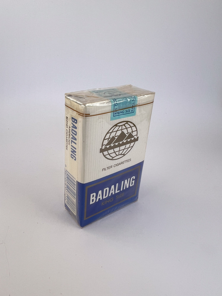 The pack features a minimalist but clearly recognizable Chinese design. The upper part is dominated by a white background with vertical lines and a silver logo – a stylized globe of the world, in the center of which is the Great Wall of China, symbolizing „Badaling“ – the most famous section of the wall near Beijing. The lower part is deep blue, with a white inscription „BADALING“ and a gold frame, giving the impression of solidity. On the top of the pack – a blue promotional seal strip with the inscription „King Size“. The overall impression is a simple but neat export-type pack, reflecting the style of classic Chinese cigarettes.