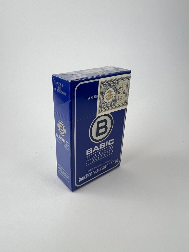 Historical data and popularity: Basic cigarettes were one of the simpler, lower-priced options on the German market, aimed at the everyday consumer. Although they were not prestigious, packs from this period are becoming increasingly rare in the collector's market.