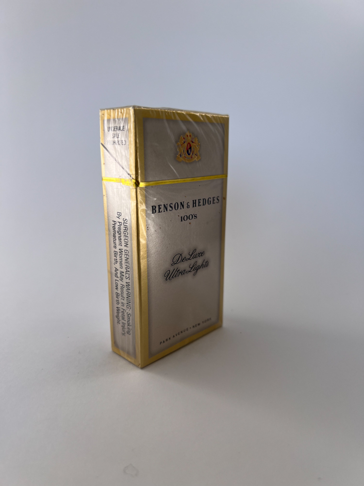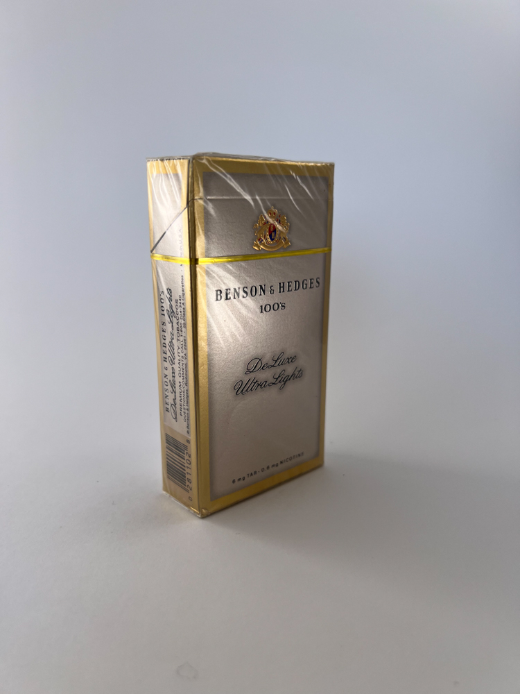 Collectible value: Medium-High. Benson & Hedges is one of the more highly regarded classic brands, and the specific 100's Ultra Lights edition with US origin has additional collector value, especially in non-US markets.