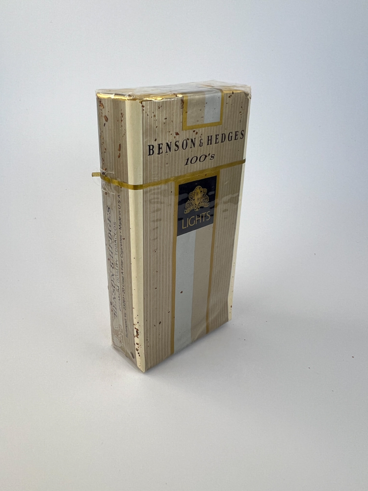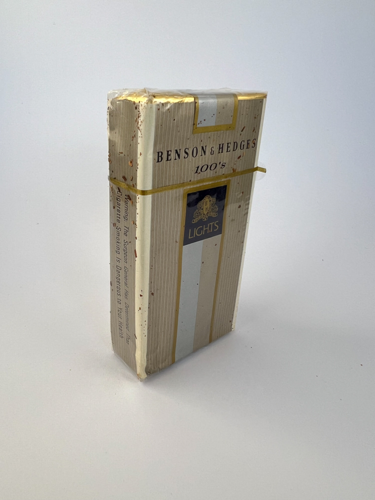 Historical data and popularity: „Benson & Hedges was one of the most popular American cigarette brands in the late 20th century. The 100mm "Lights" version was aimed at those looking for a longer, milder smoke. This particular design is no longer in use, so it has historical value.