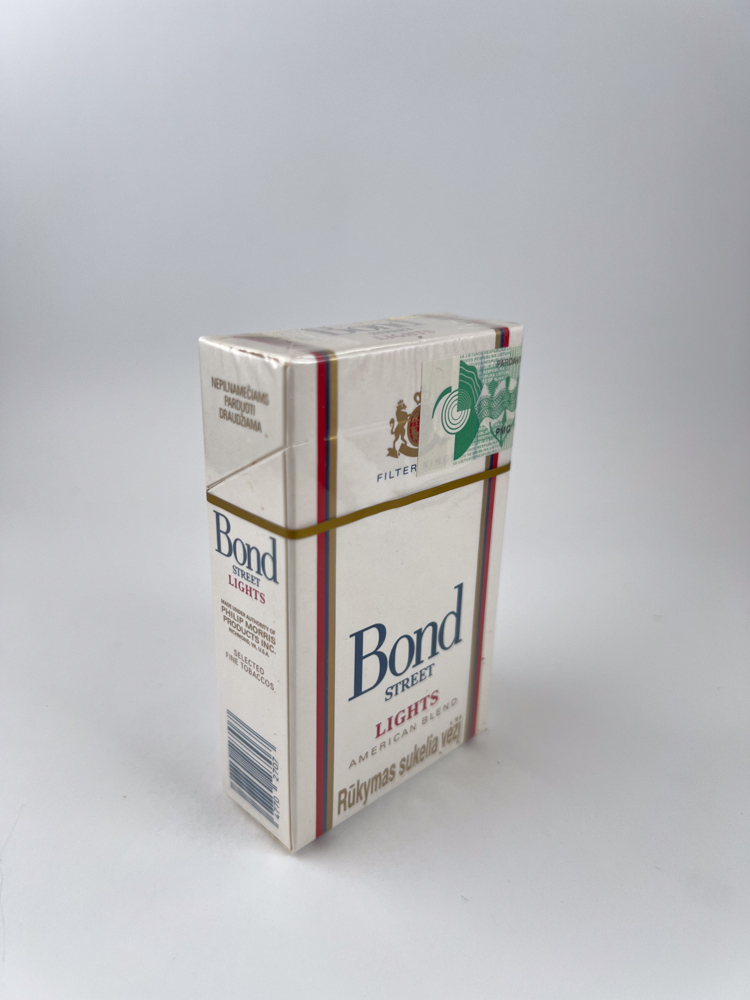 Historical data and popularity: „Bond Street is one of the older brands of Philip Morris, having been on the market since the beginning of the 20th century. This version of Lights was popular in the late 1990s and early 2000s, when the trend for lighter cigarettes took hold in the market. In Lithuania, this model was produced after the Philip Morris Lietuva factory was established in Kaunas.