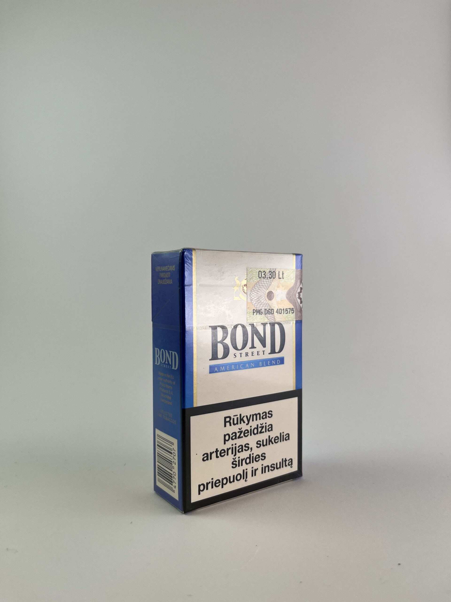 Description: Bond Street cigarettes are known for their classic taste and strong American Blend tobacco blend. The pack design is simple, maintaining the red, blue and white color combination that is characteristic of the Special Selection line. The front of the pack features a warning label with the message "Smoking Kills", which is added to highlight the health risks.