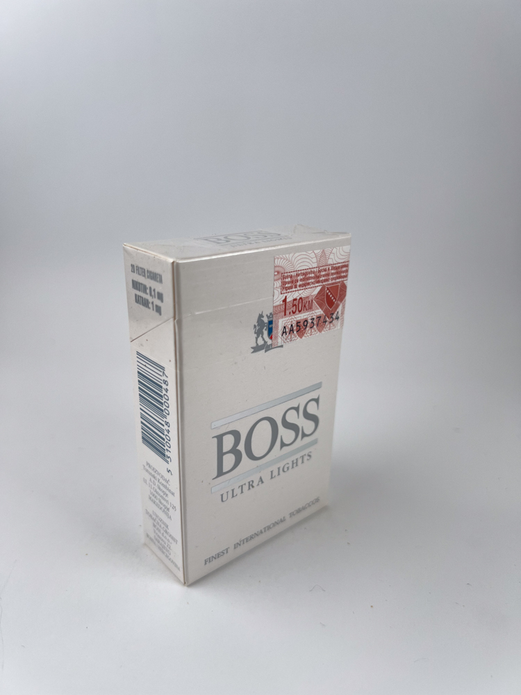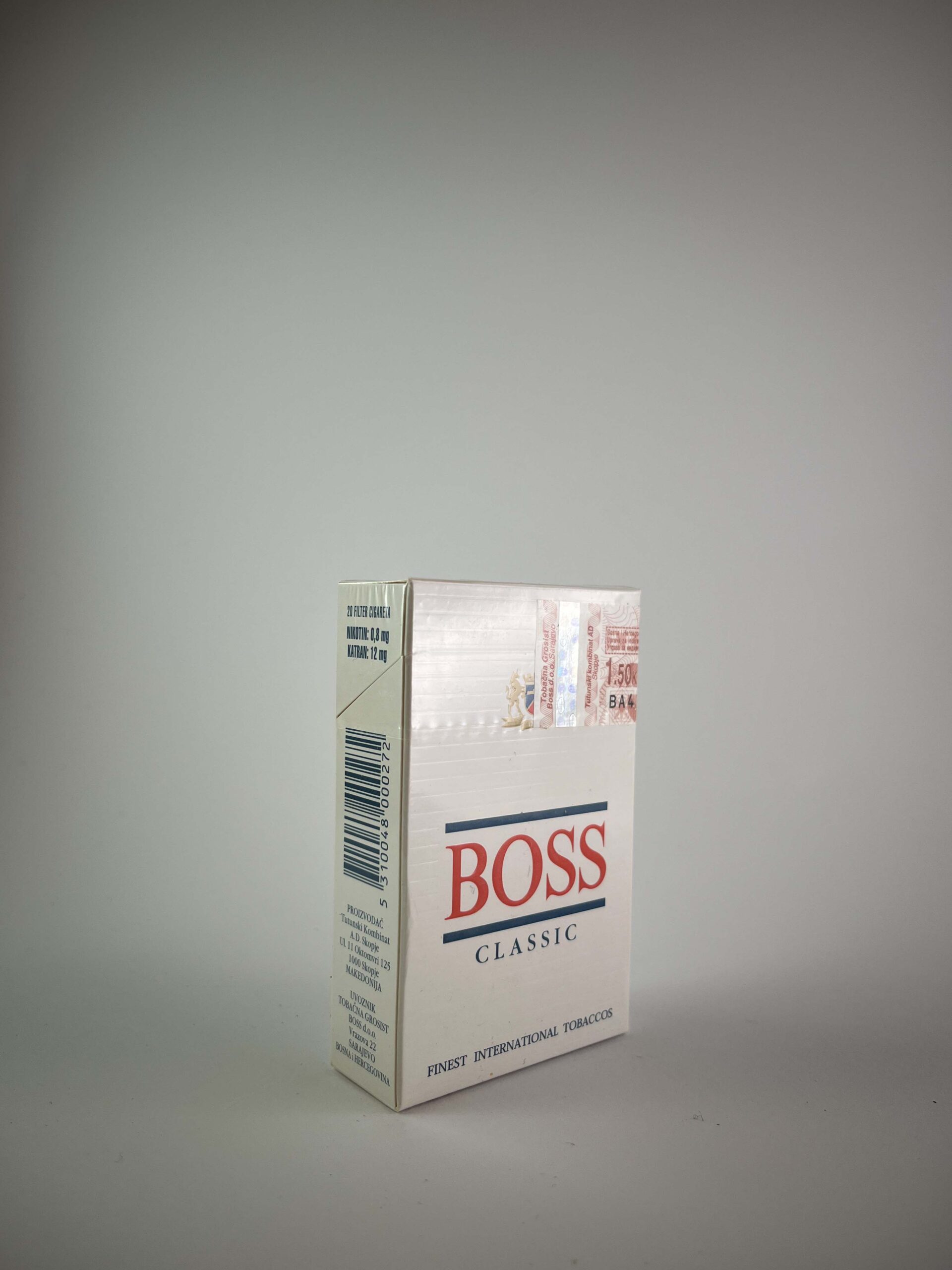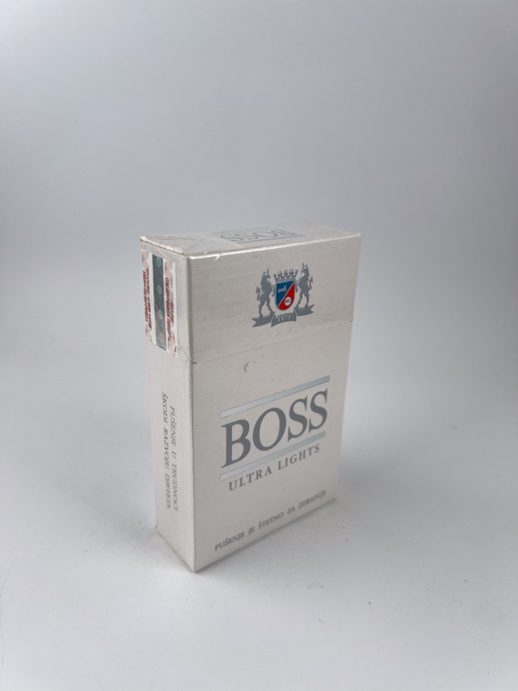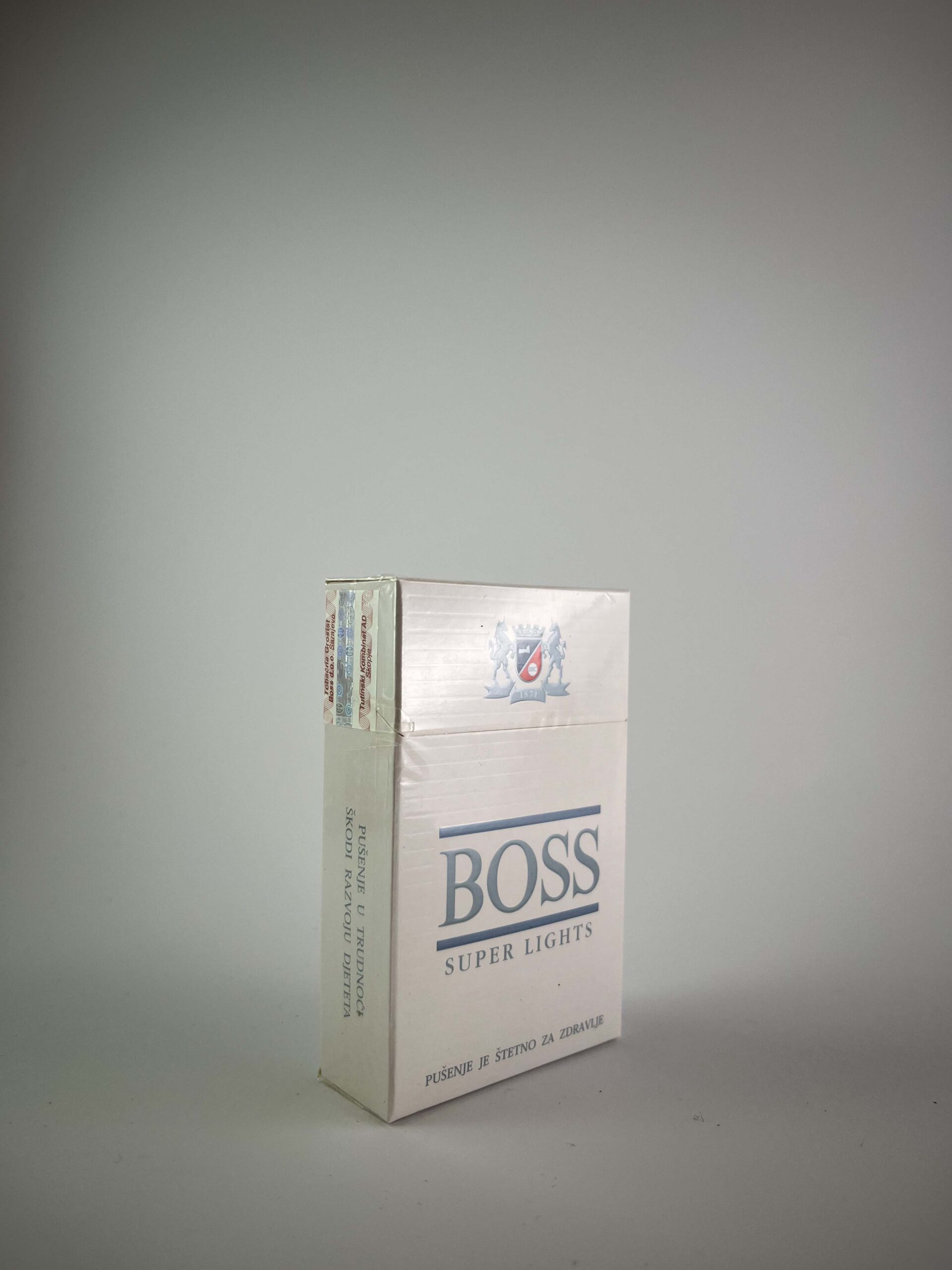 Historical data: Boss yra regioninis cigarečių prekės ženklas, paplitęs Balkanų regione, įskaitant Bosniją ir Hercegoviną. Tokie dizainai buvo naudojami XXI a. pradžioje, kai gamintojai siekė perteikti kokybės ir prestižo įvaizdį per švarų dizainą bei heraldinius elementus. Šio laikotarpio pakeliai dažnai buvo leidžiami kaip viena nuosekli linija su keliomis stiprumo variacijomis, todėl šiandien jie vertinami kaip pilnos serijos kolekciniai pavyzdžiai.