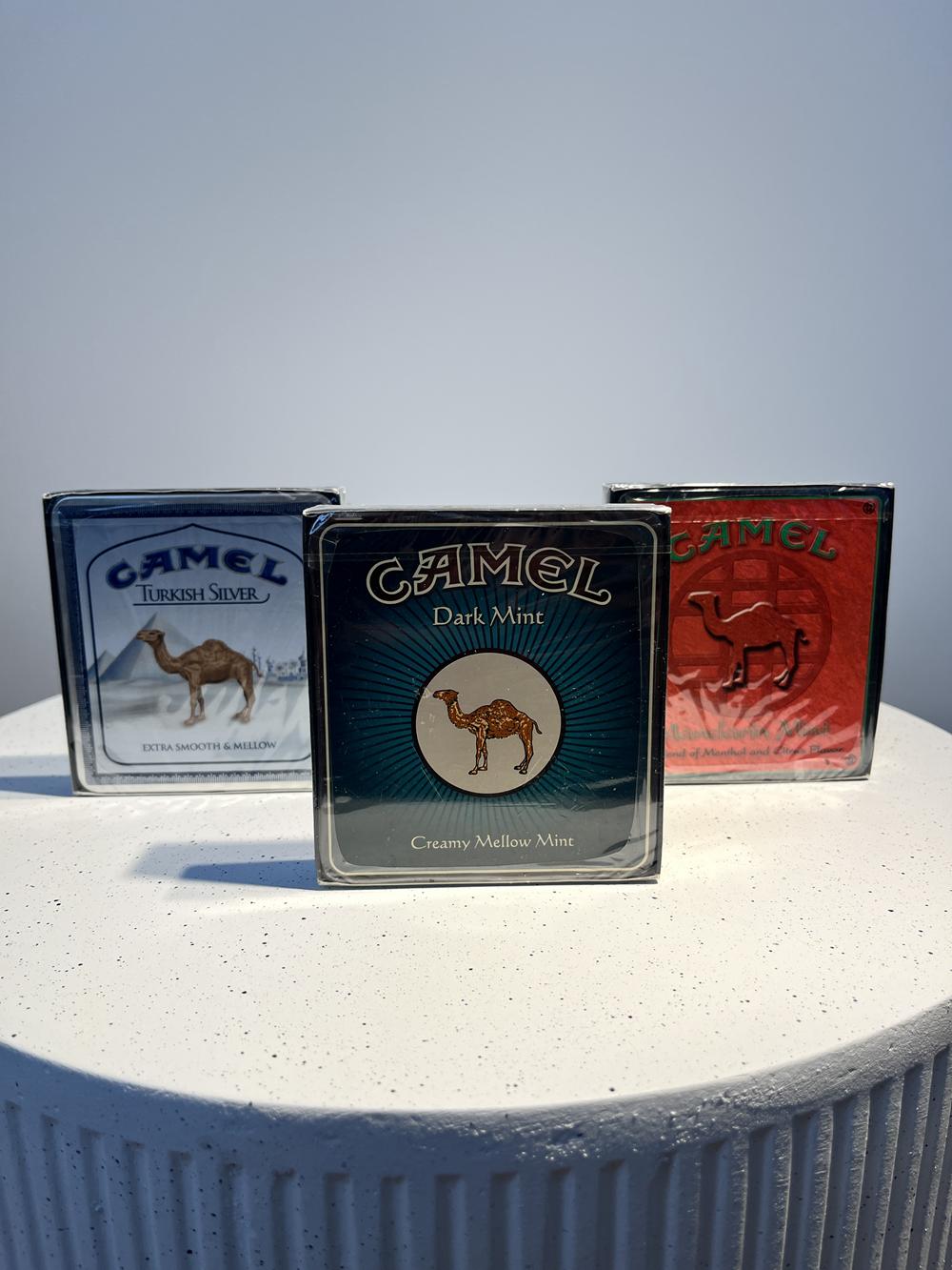 Historical data: Camel yra vienas seniausių cigarečių prekės ženklų, pradėtas gaminti JAV XX a. pradžioje, o vėlesniais laikotarpiais, ypač ribojant reklamą, pakelių dizainas tapo svarbia marketingo priemone, todėl atsirado įvairūs dizaino variantai ir regioniniai skirtumai, kurie šiandien yra vertinami kolekcininkų.