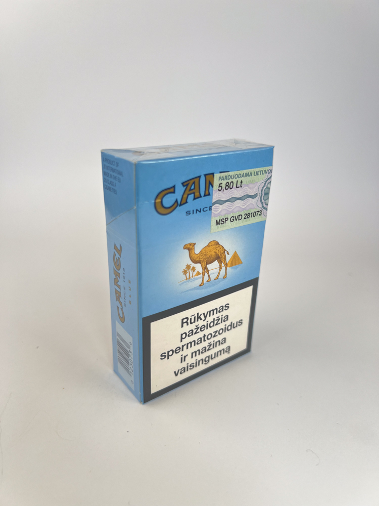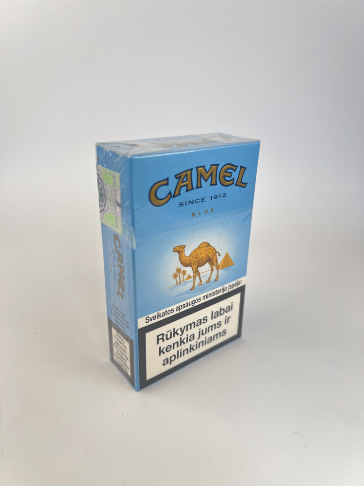 This is a classic Camel design interpretation with a light blue background – a milder tasting version for consumers looking for a lower resin content.