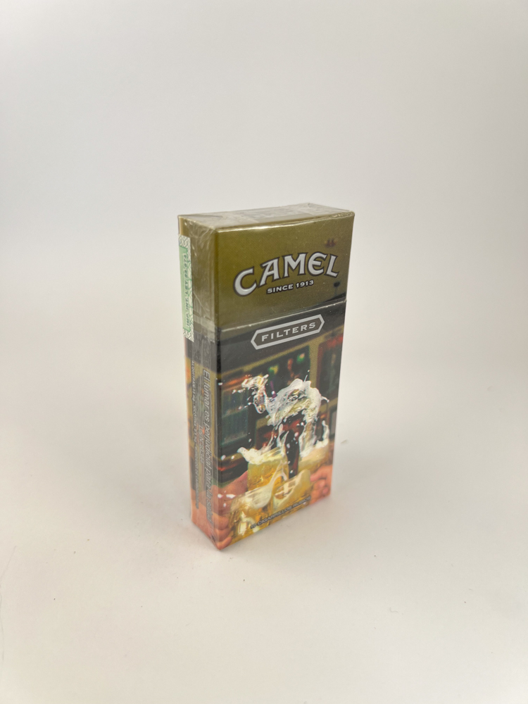 At the front of the road – dynamic bar image, in which spilled drinks are captured in motion. This symbolizes spontaneity and energy – the main ideas of the Camel Genuine series.