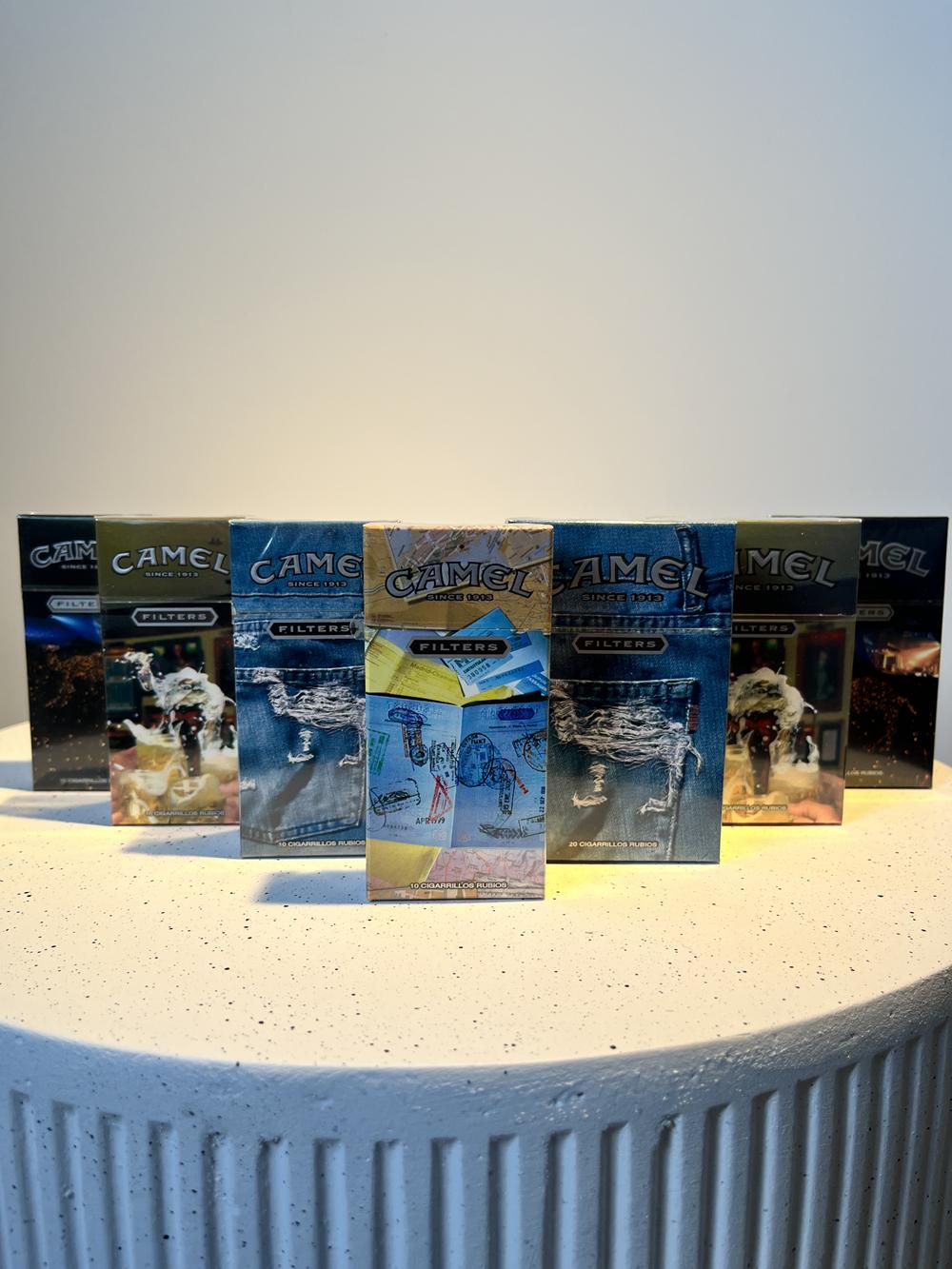 Description: This is a more visually colorful Camel series, based on lifestyle and collage themes - different packs depict scenes, textures, and fragments (jeans, travel, cityscapes, motorcycles, etc.).