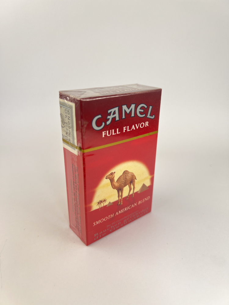 There is a large inscription at the top. CAMEL, under it – FULL FLAVOR red in gold band.
