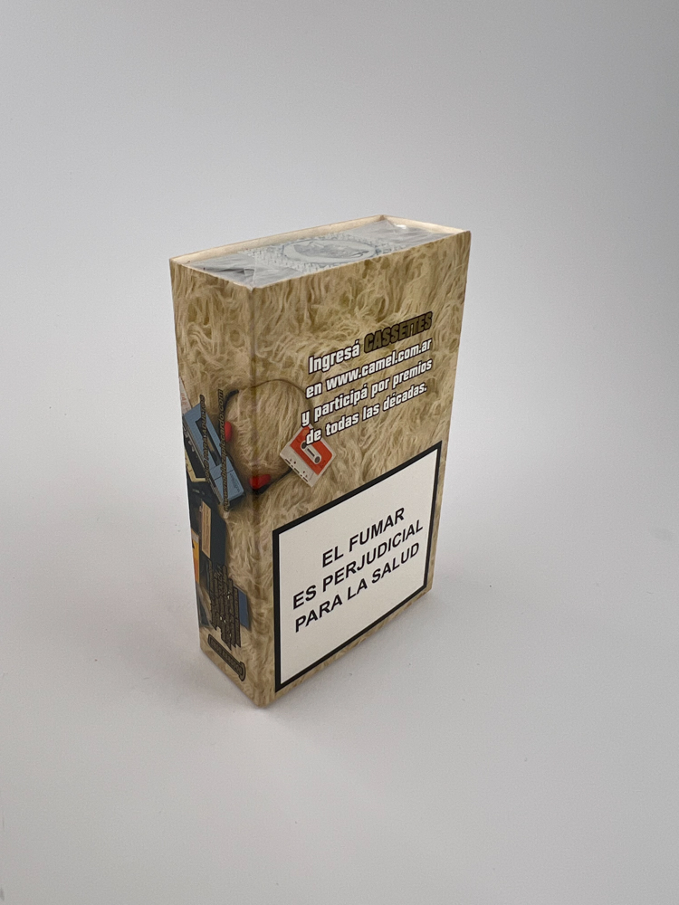 This limited edition pack of Camel Genuine 80's cigarettes is part of a decade-themed series released in Argentina. The pack design features colorful cassettes scattered on a fluffy carpet, a clear reference to the music culture of the 1980s. The back features promotional information about participating in the campaign via the website camel.com.ar. The smoking warning is in Spanish: "El fumar es predicamental para la salud". This design stands out for its playfulness, detail and strong nostalgic visual effect, making it one of the most sought-after pieces in the entire series.