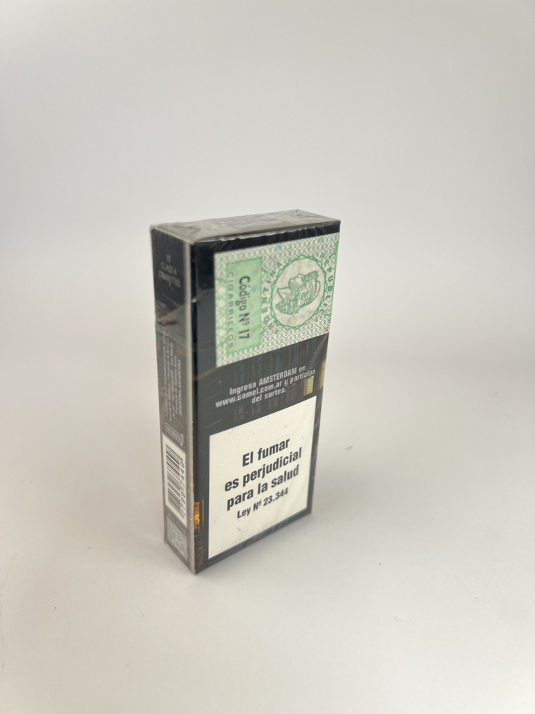 White logo on top Camel Genuine Amsterdam, and on the side – a typical Argentine excise tape with an invitation to visit the website camel.com.ar, which confirms the origin of this edition.