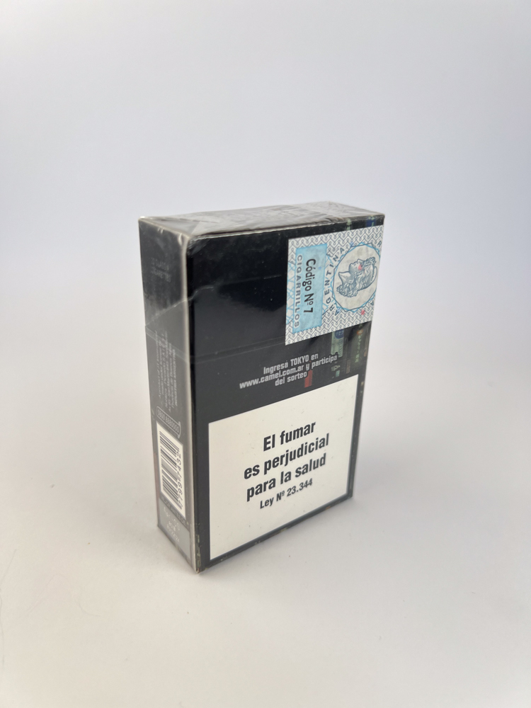 On the back is a standard Spanish health warning “"El fumar es detrimental para la salud. Ley Nº 23.344"”, and on top – an authentic Argentine Code No. 17 excise sticker with a camel emblem.