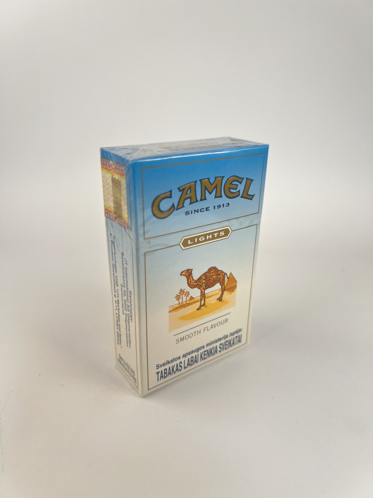 One of the three main shades of the early Camel Lithuania series: Filters (yellow), Lights (blue), Super Lights (white/silver shade).