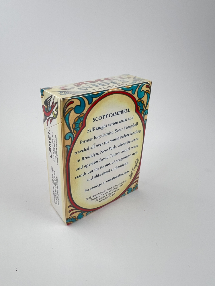 Historical data and popularity: „The Camel Artist Series was a limited edition series of collaborations with renowned artists. The Scott Campbell version is one of the most notable, as the artist had a significant influence on tattoo art in New York. This series was not repeated.