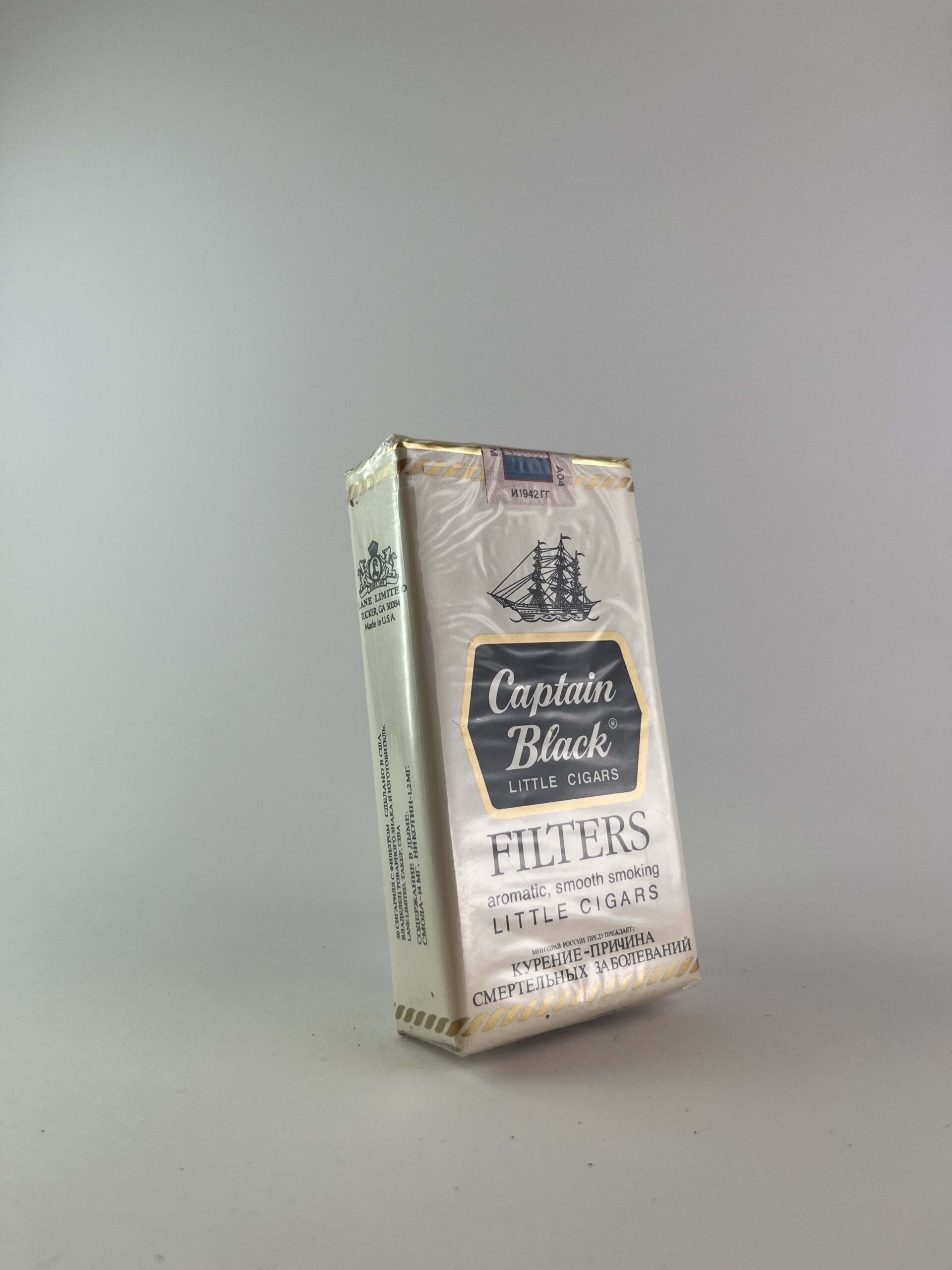 - Historical data and popularity: Captain Black is a popular brand of cigarettes and cigars, well known for its flavored products. Although not very rare, it still attracts the attention of collectors due to its recognizable brand and quality.