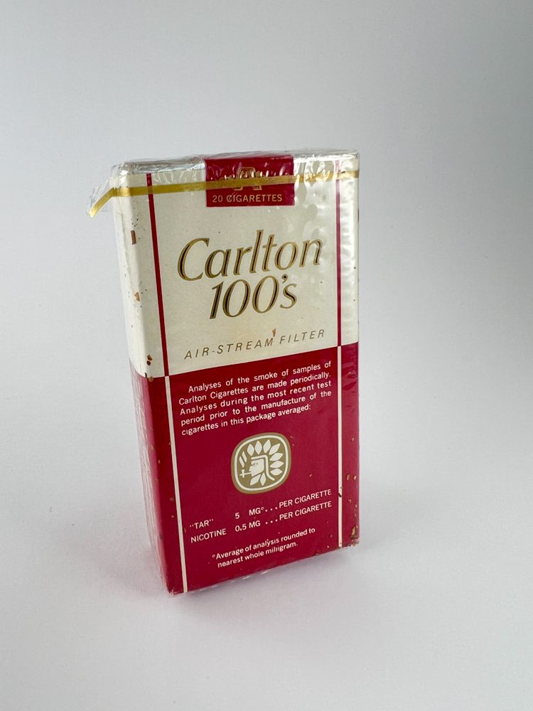 Historical data and popularity: Carlton 100's with the Air-Stream Filter were produced to reduce the amount of tar when smoked, a modern marketing move at the time. These editions are more sought after by American collectors.