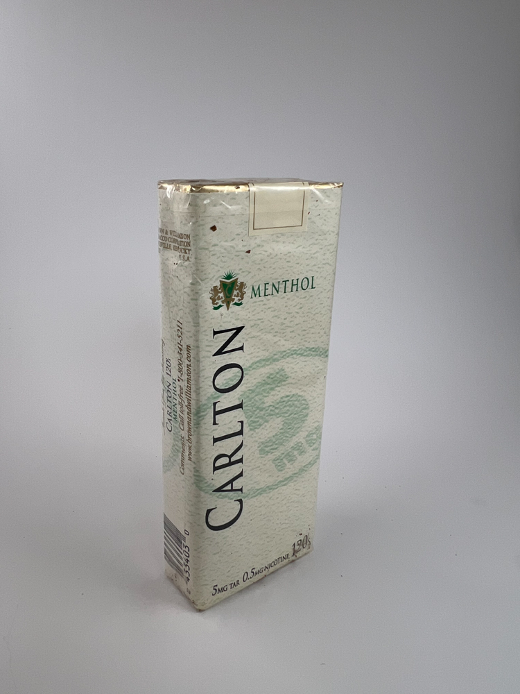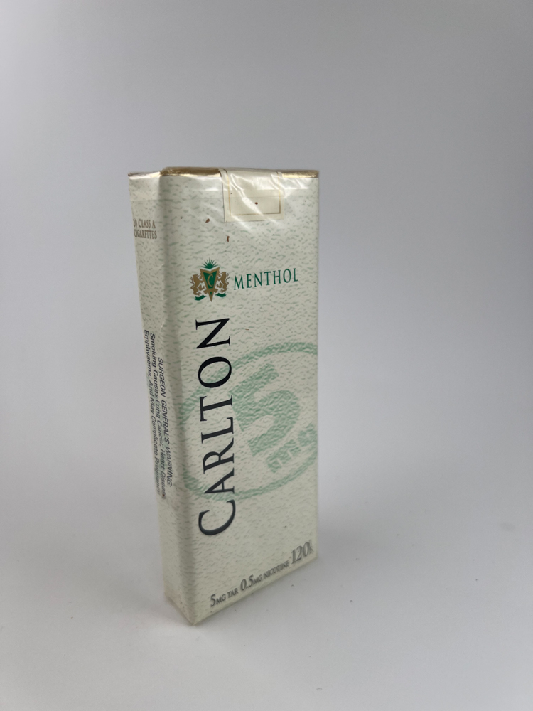 Historical data and popularity: Carlton as a brand was popular in the US among smokers looking for a weaker cigarette. The menthol 120mm version was limited in production and is now regarded as a specific collector's item.