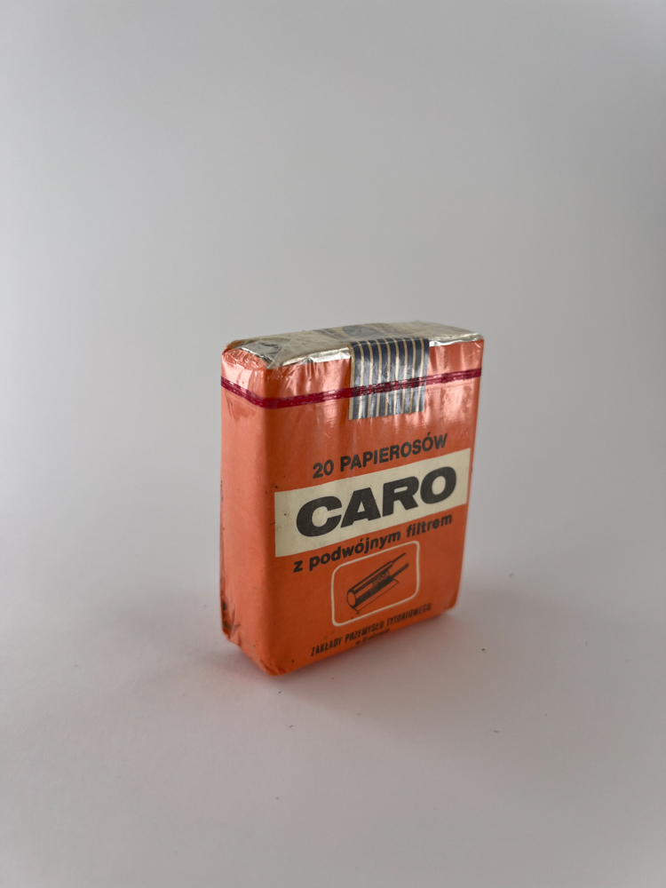 Historical data and popularity: CARO was one of the more affordable cigarette brands in Poland in the second half of the 20th century. Due to its prevalence at the time, it evokes nostalgia among older collectors. The mention of a double filter is an additional element of rarity.