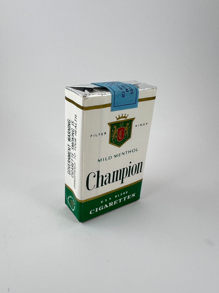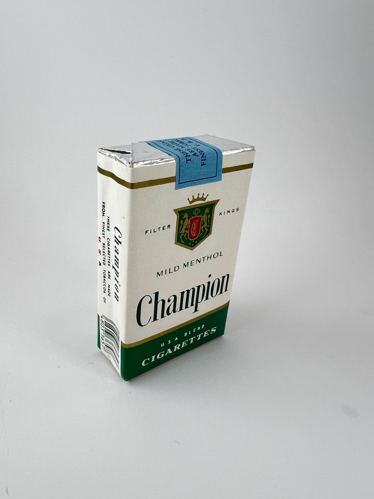 Collectible value: Above average. American Champion cigarette packs with original packaging intact. US Treasury Tax Stamp are rare, as this labeling has not been used for over 40 years. The menthol version is even rarer than the regular "Regular" or "King Size" version.
