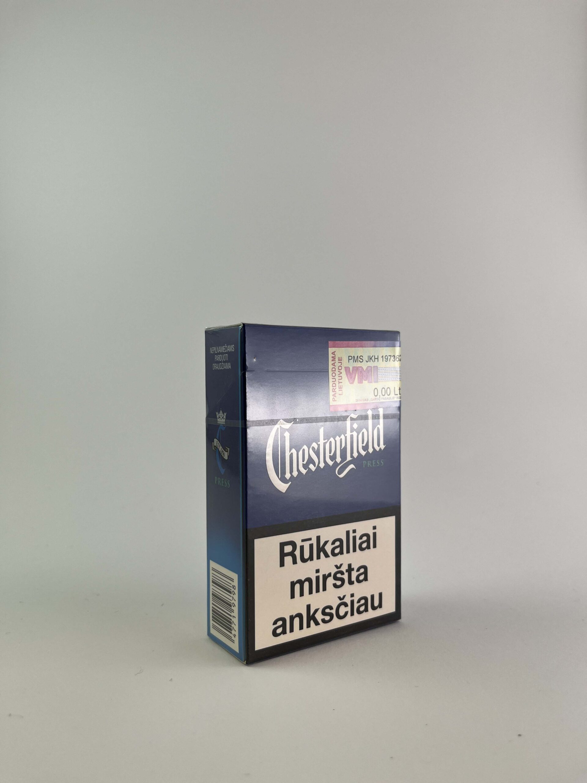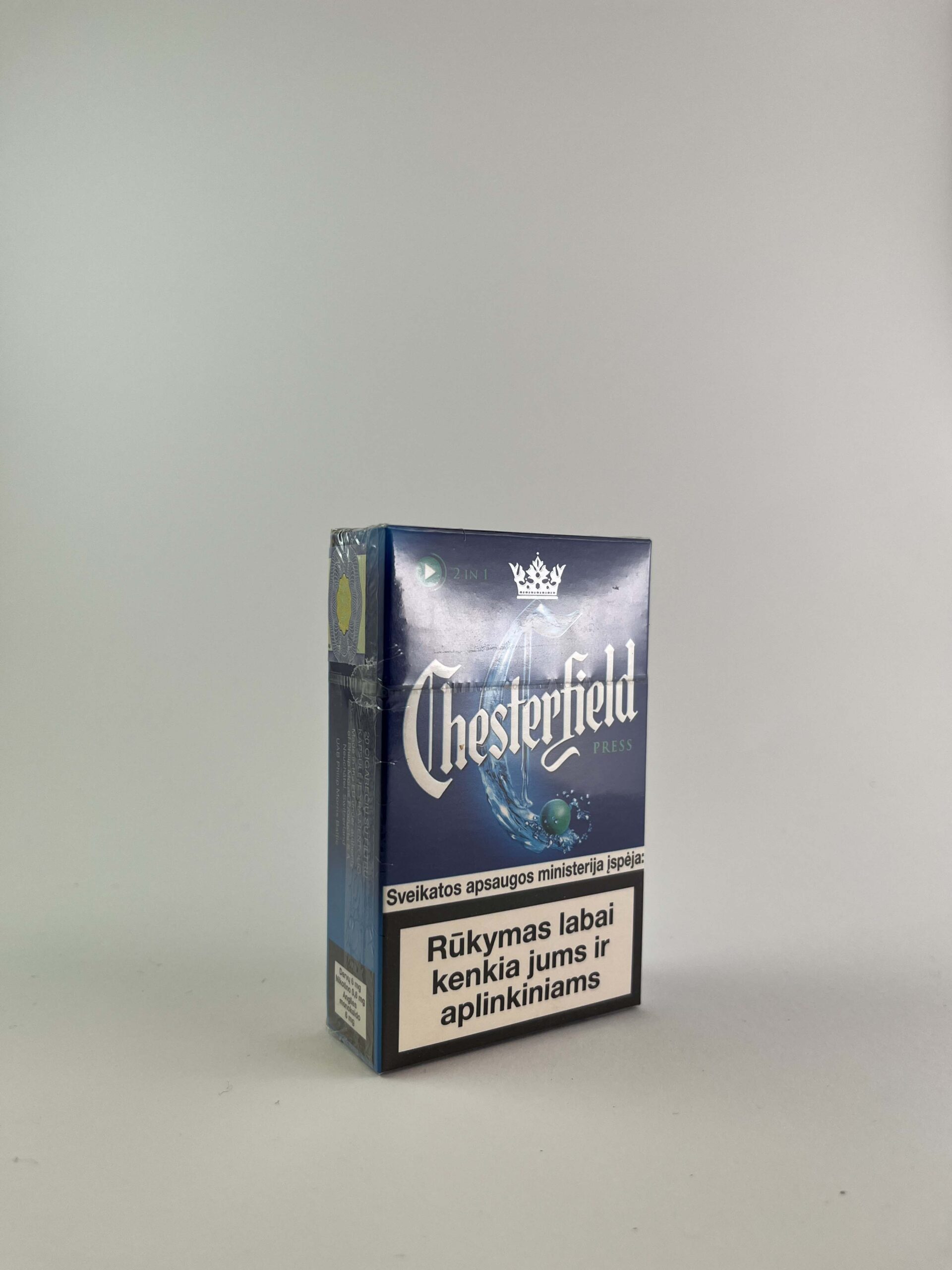1. Description: Chesterfield is an international brand and the Press series is unique due to the menthol ball used in this series. The pack of this design is blue with white and blue details and the cigarettes have a filter with a menthol ball that can be blown to give the cigarette a fresh taste.