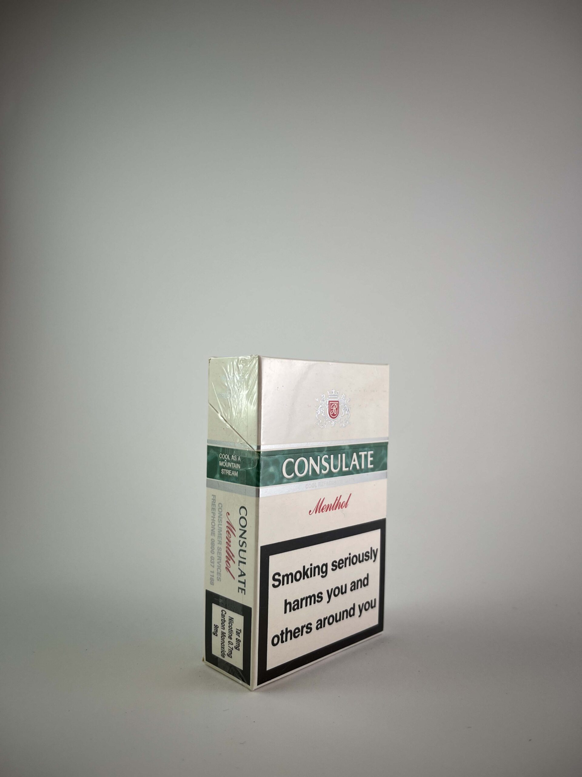 - Historical data and popularity: „Consulate menthol cigarettes are known for their unique taste and long-standing popularity among consumers in the United Kingdom. They are not very rare in the collector's community, but are valued for their condition and flavor segmentation.