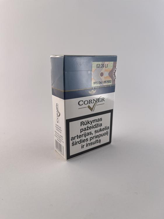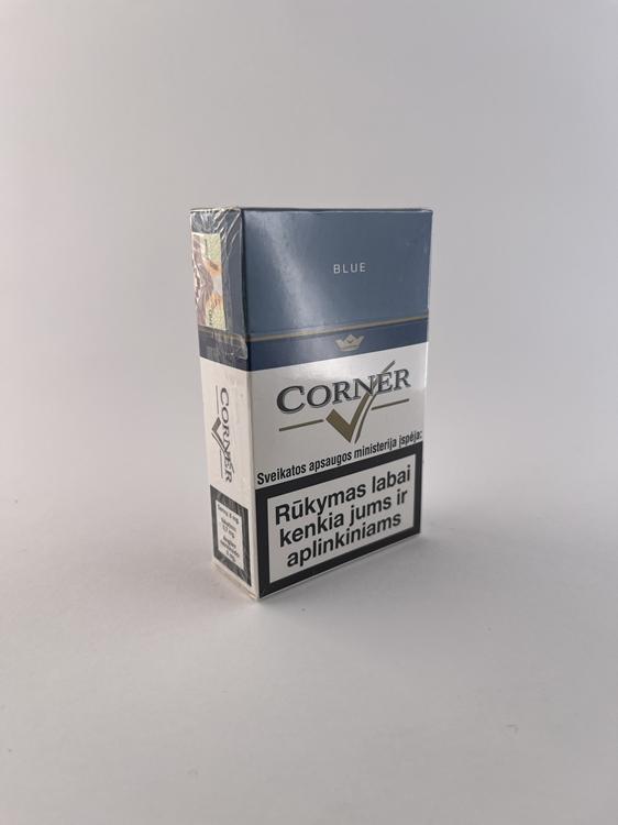 Šis „Corner Blue“ cigarečių pakelis pasižymi paprastu ir aiškiu dizainu, kuriame dominuoja mėlyna ir balta spalvos su plona aukso linija per vidurį. „Blue“ žymėjimas viršutinėje dalyje nurodo lengvesnio stiprumo variantą. „Corner“ logotipas su varnelės simboliu išlieka pagrindiniu identiteto elementu, o bendras dizainas orientuotas į funkcionalumą, be perteklinių dekoracijų. Lietuviški sveikatos įspėjimai ir akcizo ženklas patvirtina vietinę rinką.