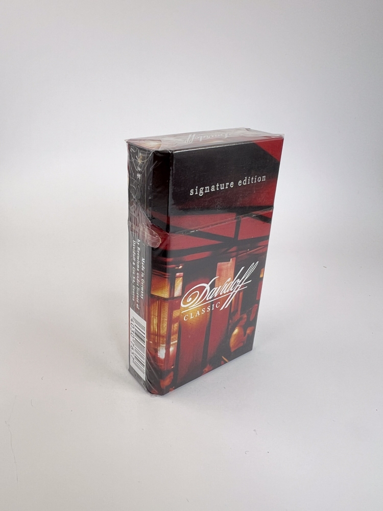 The package is filled warm, evening interior lighting, which is dominated by red and amber tones, conveying a mood of comfort, passion and nightlife. On the front part – a subtle Davidoff Classic logo, above it – minimalist inscription signature edition.