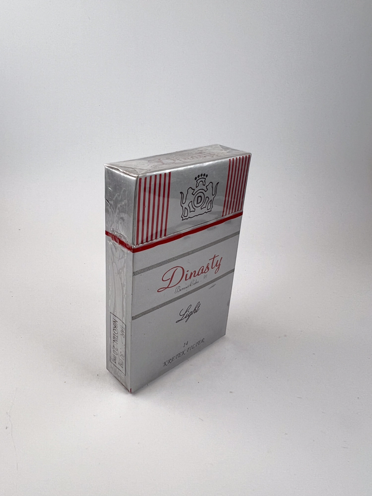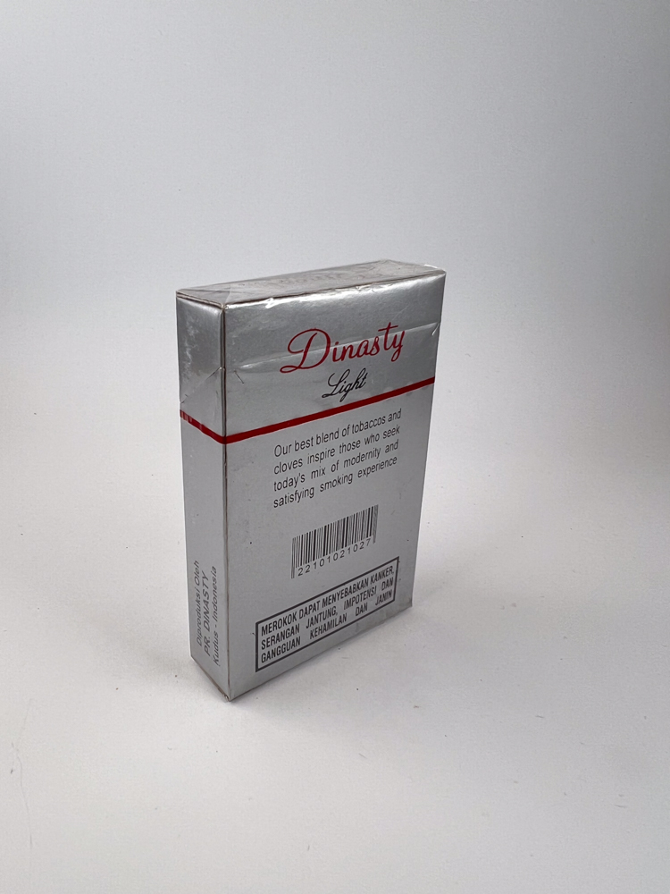 „Dynasty Light is light kretek cigarettes packaging that stands out with a minimalist and elegant design that is visually reminiscent of Western cigarette brands.