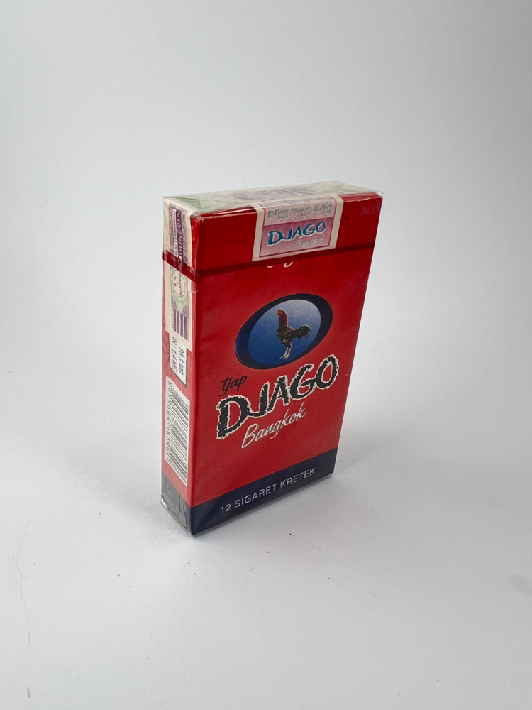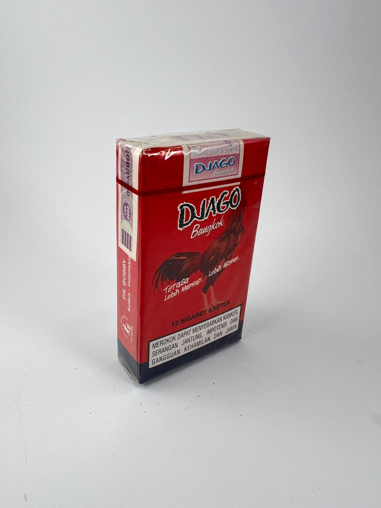 Aprašymas: Djago Bangkok yra tradicinis indonezietiškas kretek cigarečių pakelis. Ryškiai raudonos spalvos fonas dekoruotas kovinio gaidžio atvaizdu, kuris pabrėžia prekės ženklo pavadinimą „Djago“ (gaidys). Ant priekinės pusės nurodyta „12 Sigaret Kretek“, kas rodo, kad tai mažesnio formato pakelis. Galinėje pusėje taip pat vaizduojamas gaidys ir pateiktas šūkis indoneziečių kalba „Terasa Lebih Mantap, Lebih Nikmat“ (jaučiasi stipriau, maloniau). Pakelis turi oficialų Indonezijos akcizo ženklą ir įspėjimą apie rūkymo žalą. Dėl mažos talpos (12 vnt.) šis pakelis laikomas neįprastu ir paklausiu kolekcionierių tarpe.